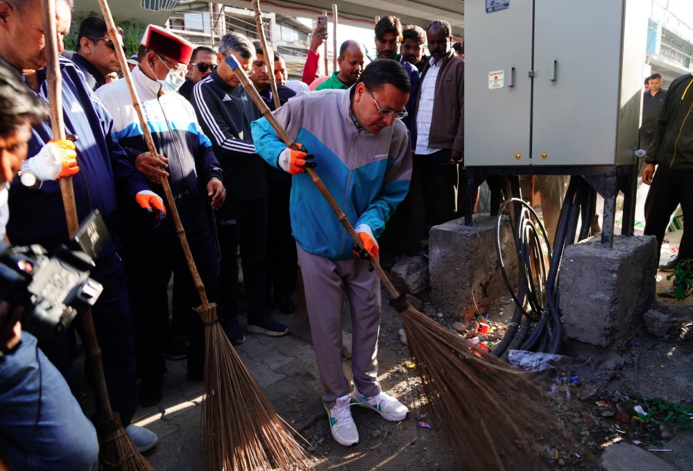मुख्यमंत्री धामी ने स्वयं झाडू लगाकर दिया स्वच्छता का संदेश