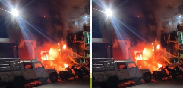 तीन मंजिला रेस्टारेंट में लगी आग, लाखों का नुकसान