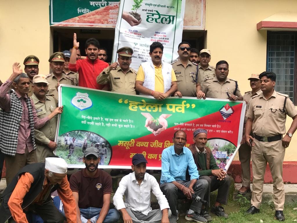 कैम्पटी :  मसूरी वन्य जीव विहार रेंज धोवीधाट में  हरेला पर्व वृक्षारोपण कर बड़ी धूमधाम से मनाया गया।  जिसमें इस कार्यक्रम के मुख्य अतिथि ओबीसी  मोर्चा के  उपाध्यक्ष  राजेश नौटियाल  थे। इन्होंने ही  कार्यक्रम का शुभारंभ  करते हुए  सभी लोगों को हरेला पर्व की शुभकामनाएं दी।   राजेश नौटियाल ने  हरेला पर्व का  महत्व बताते हुए तभी से   वृक्ष लगाने की अपील की है। साथ ही  उन्होंने बताया  सरकार द्वारा  लगातार प्रयास किया जा रहा है कि आमजन के बीच जाकर इस पर्व को  बड़े  उत्साह के साथ   मना कर धारातल  को सुंदर बनाएं।   जिससे आगे आने वाले समय में जल संरक्षण के साथ-साथ वातावरण भी शुद्ध हो सके।  इस दौरान विनोग  रेंज के वंशज अधिकारी  लाखीराम आर्य ने  बताया कि  आबादी बढ़ने के बाद वनों पर ज्यादा प्रभाव पड़ रहा है।  जिसके कारण जल स्त्रोत दिन प्रतिदिन सूख रहे हैं. इन्हें बचाने को लेकर अधिक से अधिक वृक्षारोपण कर जल संरक्षण व पर्यावरण सुरक्षित रखने में अपना योगदान दें।
