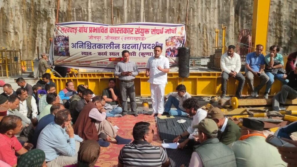 धरना पाली ग्राम पंचायत के अंतर्गत कूणा गांव में चल रहा है, जहां प्रभावित काश्तकार “लखवाड़ बांध प्रभावित संयुक्त संघर्ष मोर्चा” के बैनर तले एकजुट हुए हैं।