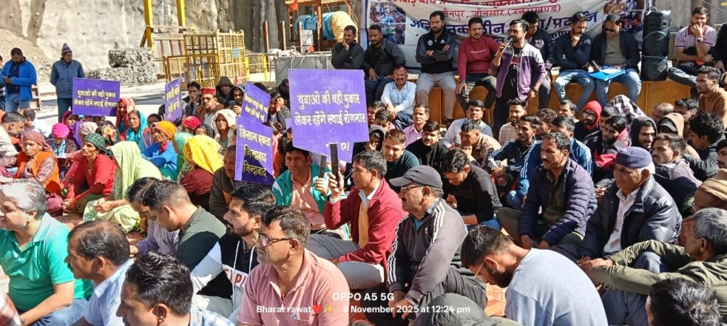 टिहरी। लखवाड़ बाँध प्रभावित काशतकार संयुक्त संघर्ष मोर्चा के तत्वावधान में आज दिनांक 9’नवंबर’2025 को परियोजना स्थल लोहारी में लगातार 17वें दिन भी धरना प्रदर्शन जारी रहा जिसमें सभी प्रभावित काशतकार व बेरोजगार युवाओं द्वारा प्रतिभाग किया गया। जिसमे की काफी संख्या बल में मातृ शक्ति व युवाओं की उपस्थिति दर्ज हुई ।
